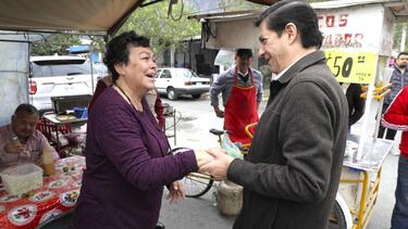 Escobedo, N.L., 6 Abr.- Para establecer programas y canales de actuación que les permitan tener un mejor desempeño en su actividad comercial, Felipe Canales, Secretario de Ayuntamiento diálogo con vendedores del mercado popular que se instala los lunes en la Colonia Fomerrey 9.