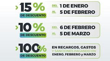 路 100% de descuento en recargos, gastos y sanciones pagando en enero, febrero o marzo.