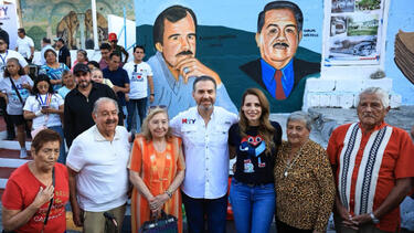 El alcalde Adri谩n de la Garza Santos y su esposa, la presidenta del DIF, Gaby Oyervides, encabezaron este jueves el reinicio del programa Barrio de mi Coraz贸n, en la colonia Topo Chico.
