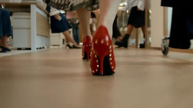 Unos zapatos rojos con tachuelas doradas pisan con fuerza al entrar en una redacción mientras suena el 'Vogue' de Madonna y aparecen imágenes de desfiles.