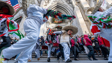 La virgen fue despedida con la Danza de los Matachines frente a la catedral ante la mirada de sorpresa de neoyorquinos y visitantes.