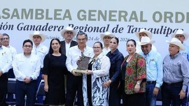 Durante la Asamblea, a la que se dieron cita 54 asociaciones ganaderas locales, as铆 como presidentas y presidentes municipales de Nuevo Laredo, Aldama, Casas, G眉茅mez y Gonz谩lez, adem谩s de legisladoras y legisladores, funcionarios estatales y todo el Consejo Directivo de la UGRT, el gobernador entreg贸 el reconocimiento al M茅rito Ganadero a Eulalio Guerra Guerra, de Reynosa; Mar铆a Elvira P茅rez P茅rez, de Abasolo, y a don H茅ctor Osvaldo Barberena Aguirre, de Nuevo Laredo.