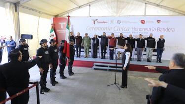 Acompa帽aron al gobernador en esta ceremonia: Tania Contreras L贸pez, presidenta del Supremo Tribunal de Justicia; Humberto Armando Prieto Herrera, presidente de la Junta de Gobierno del Congreso del Estado; Sergio Ojeda, presidente de la Mesa Directiva del Congreso; H茅ctor Villegas Gonz谩lez, secretario general de Gobierno; Willy Z煤帽iga Castillo, secretario ejecutivo del Sistema Estatal de Seguridad P煤blica; Eduardo Govea Orozco, fiscal general de Justicia; Adolfo Ampar谩n Hern谩ndez, coordinador estatal de la Guardia Nacional en Tamaulipas, y Gerardo Mart铆nez Andrade, en representaci贸n de la 48 Zona Militar.