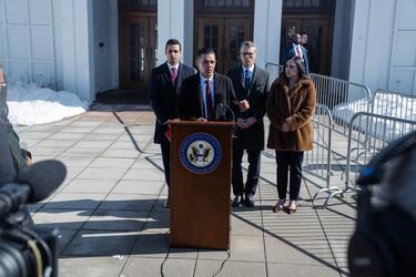 "Exigimos que el presidente Trump comparezca oficialmente ante el Comit茅 de Supervisi贸n. Aparece en los archivos de Epstein junto a Jeffrey Epstein y (su c贸mplice) Ghislaine Maxwell, casi m谩s que cualquier otra persona", dijo el representante Robert Garc铆a antes del interrogatorio al expresidente Clinton en Chappaqua (Nueva York).