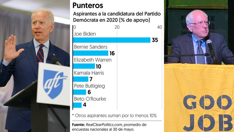De hecho, es muy probable que las encuestas en estos momentos midan más el reconocimiento de nombre que la preferencia en sí. No es por nada que quienes lideran las encuestas son, hoy por hoy, los personajes que han sido más visibles políticamente a nivel nacional en los últimos años: Joe Biden, quien fungió como vicepresidente con Barack Obama, y Bernie Sanders, quien compitió palmo a palmo con Hillary Clinton por la candidatura demócrata en 2016. Según las encuestas que reporta el portal RealClearPolitics, Biden va con más de 30 por ciento de las menciones, y Sanders capta entre 15 y 20 por ciento. Ambos personajes mantienen un alto capital político, pero también son los aspirantes de mayor edad (llegarían casi de 80 años a la contienda presidencial de 2020).