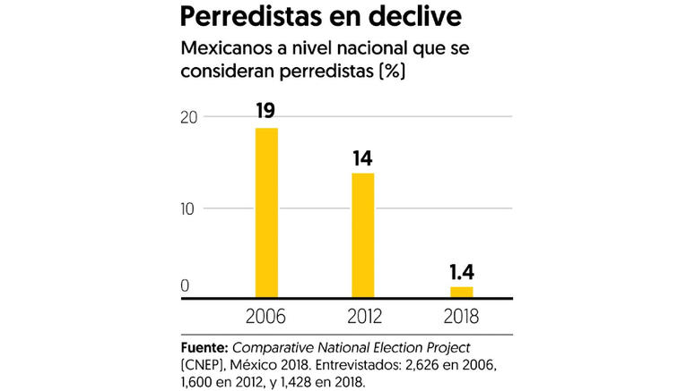 Las encuestas postelectorales del Proyecto Comparativo de Elecciones Nacionales (CNEP), realizadas en México en las últimas tres elecciones presidenciales, muestran una debacle en el porcentaje de mexicanos que se identifican con el partido del sol azteca: En 2006, inmediatamente después de la elección presidencial, la encuesta registró 19 por ciento de mexicanos que se identificaban como perredistas. A pocos días de las elecciones de 2012, el perredismo representaba el 14 por ciento del electorado (una baja de cinco puntos respecto a la elección anterior pero aún sólido). Según la encuesta realizada los días posteriores a la elección de 2018, los perredistas representaban el 1.4 ciento del electorado.