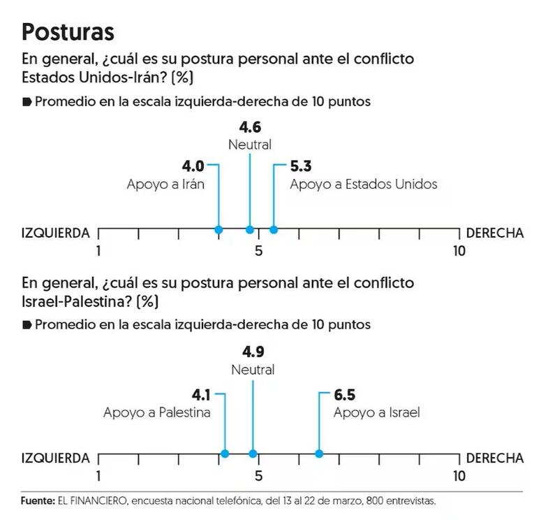 De acuerdo con la encuesta nacional de El Financiero realizada en el mes de marzo, 76 por ciento de las 800 personas entrevistadas dijo tener una postura de neutralidad en el conflicto entre Estados Unidos e Irán. Tres cuartas partes de la población entrevistada toma una actitud neutral.
