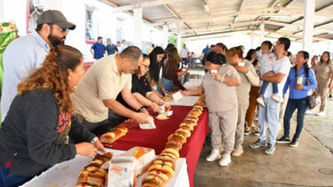Este pan tradicional preparado de manera artesanal cont贸 con una longitud de 20 metros y est谩 compuesta por un aproximado de 40 barras de rosca horneadas de manera individual en la panader铆a del centro.